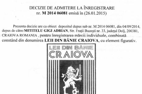 Adrian Mititelu a înregistrat o nouă marcă la OSIM, Leii din Bănie Craiova, anunță site-ul oficial al Universității Craiova. Aceasta se alătură celorlalte mărci deținute de omul de afaceri: FC Univesitatea Craiova, Fotbal Club Universitatea Craiova, Echipa de Fotbal Universitatea Craiova, Clubul de Fotbal Universitatea Craiova, Tricoul Oficial al Echipei de Fotbal Universitatea Craiova.