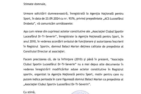 Având aceste informații pe surse, reporterul ProSport a depus o solicitare la ANS, iar răspunsul este unul halucinant: Marian Balaci este în continuare președinte la Luceafarul Drobeta, deși în actele depuse la AJF Mehedinți și FRF spune că din 2022 este tatăl său Costică Balaci!
