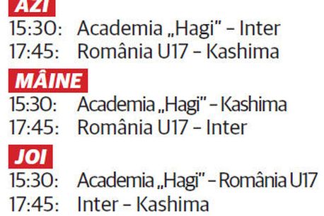 Italienii sunt antrenați de Sergio Zanetti, fratele actualului căpitan de la formația de seniori (Javier Zanetti), și Luca Facchetti, fiul marelui fotbalist Giacinto Facchetti, fost jucător și președinte la Inter. Din lotulul deplasat face parte și fundașul român Mihai Alex Manolache. Se va juca după sistemul fiecare cu fiecare, iar la final se va alcătui un clasament pe baza căruia se va decide câștigătoarea. Toate partidele sunt live pe sport.ro.