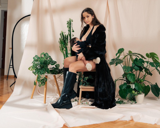 La ședința foto organizată cu o săptămână înainte de Crăciun, Ioana Timofeciuc a dorit să imortalizeze și momentul în care o alăptează pe fiica fotbalistului de la FCSB.