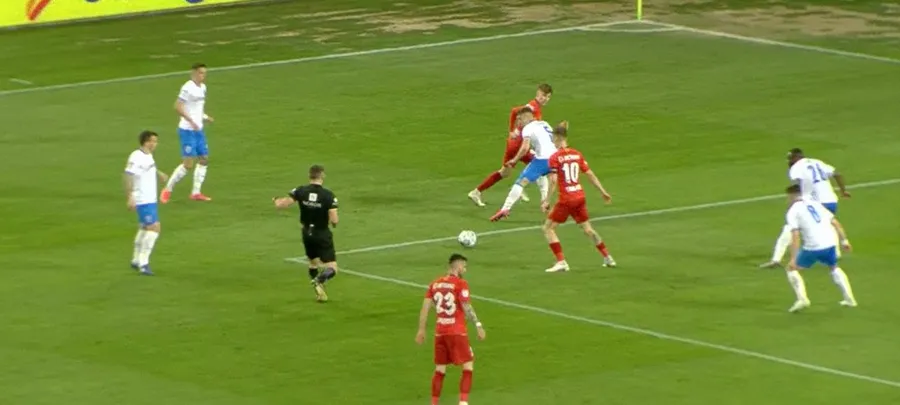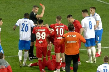 Istvan Kovacs l-a eliminat pe Bogdan Vătăjelu în repriza a doua a derby-ului dintre Universitatea Craiova și FCSB. Arbitrul le-a refuzat și oaspeților un posibil penalty, la faultul lui Nicușor Bancu asupra lui Romeo Niță.