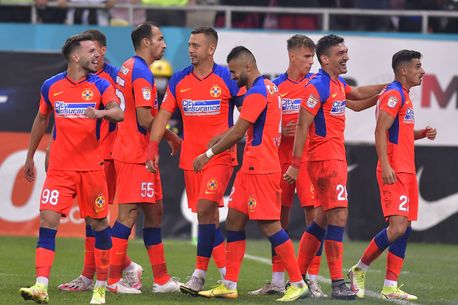 Bucurie a fotbalistilor stelisti dupa un gol marcat cu Iulian Lucian Cristea, Andrei Ioan Cordea si Andrei George Miron in meciul de fotbal dintre FCSB si Dinamo Bucuresti, contand pentru Liga 1 Casa Pariurilor, desfasurat pe Arena Nationala din Bucuresti, duminica 12 septembrie 2021. © FOTO:Razvan Pasarica/SPORT PICTURES