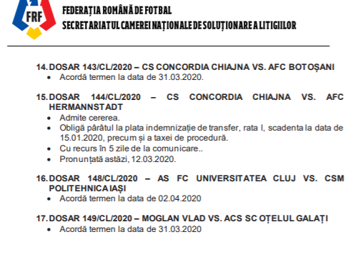 Astfel, Federația a oferit noi termene pentru dosarele aflate pe rol, 1 aprilie pentru cele din cadrul Comisiei de Disciplină și Etică, și 2 aprilie pentru cele din cadrul Camerei Naționale de Soluționare a Litigiilor și Comisiei de Recurs.
