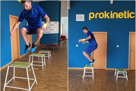 Andrei Dumitraș, surprins în timpul unui antrenament de pliometrie
