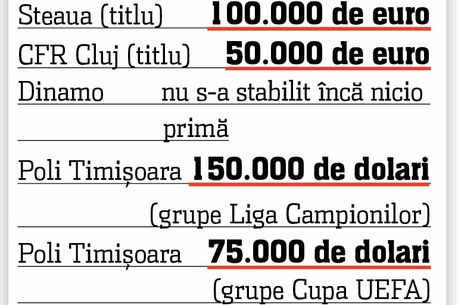 Patronul giuleștenilor a stabilit deja suma cu care va fi recompensat fiecare elev al lui Mircea Rednic în cazul în care alb-vișiniii vor ocupa locul 2 în campionat și vor reuși totodată accederea în cea mai râvnită competiție intercluburi. „Fiecare jucător va primi peste 100.000 de euro dacă Rapid termină campionatul pe locul 2 și ajunge în grupele Ligii. Repet, vor primi acești bani doar dacă vor juca în Ligă“, a precizat ieri fostul vicepremier. „Mircea Rednic a gestionat greșit situația, dar nu e în pericol, indiferent de rezultatul de la Craiova. Rednic va fi în continuare antrenorul Rapidului“, a declarat Copos, care a adăugat că va merge în tribunele arenei din Craiova.