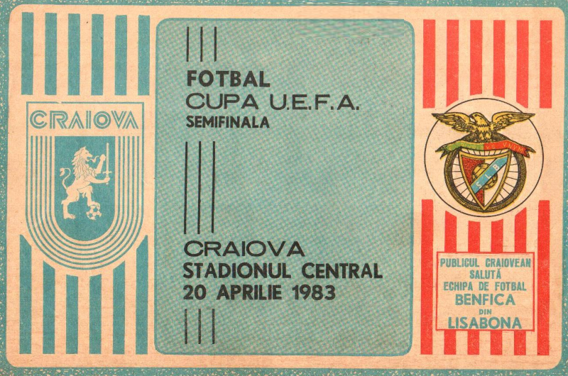 Programul de meci al partidei Universitatea Craiova – Benfica Lisabona, 20 aprilie 1983, semifinala Cupei UEFA