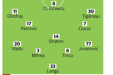 Rezerve: And. Bălan – Crețu, Avrămia, Ciucur, Herghelegiu, Cl. Tudor, Keita