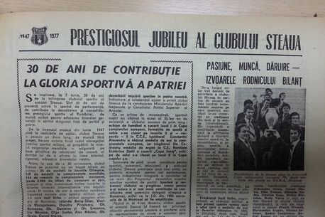 Pagina 3 a ziarului Sportul din 7 iunie 1977, momentul în care o pagină întreagă a fost dedicată aniversării a 30 de ani de la fondarea clubului Steaua
