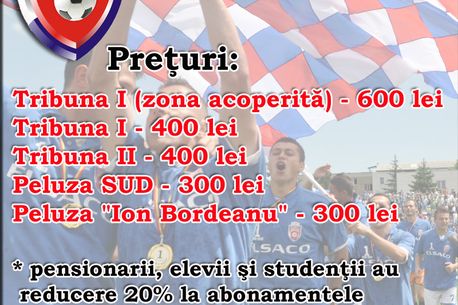 Abonamentele se pot achiziționa vis-a-vis de Stadionul Municipal de la FAN CLUB CAFFE FC Botoșani, zilnic între orele 9.00 și 20.00.