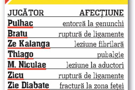 Pentru „câini”, meciul și blestemul! Mai întâi s-a „rupt” grav Pulhac, în meciul cu Farul, a urmat Bratu, la derby-ul cu CFR, Ze Kalanga, în tricoul naționalei angoleze, iar aseară, și ivorianul Zie Diabate.