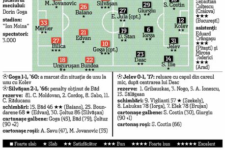 Vedeta formației clujene n-a mai strălucit de la partida din Giulești, dar sâmbătă a demonstrat că a ieșit din pasa proastă și a fost lăudat de Meszaros. „Îmi doresc ca această convocare la echipa națională să-i facă bine lui Goga (n.r. - foto)", a declarat Alpar Meszaros în urmă cu o săptămână, iar dorința tehnicianului pare să fi fost îndeplinită.