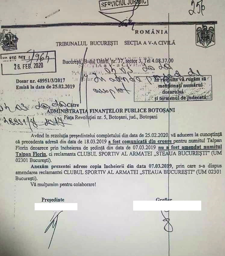 Vă informez că nu toate informațiile sunt publice și nici de interes public. Forza Steaua! Doar împreună suntem puternici” – Florin Talpan