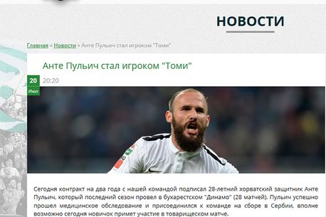 Ante Puljic a fost prezentat pe site-ul oficial al lui Tom Tomsk. Fostul fundaș al lui Dinamo a fost foarte aproape de Steaua, dar s-a răzgândit imediat după ce a primit o ofertă de la Tom Tomsk.