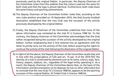 „În lumina celor de mai sus, vicepreședintele Comitetului Disciplinar reamintește că, în conformitate cu jurisprudența TAS și a articolului 15, paragraful 4 din Codul Disciplinar al FIFA din 2019, identitatea unui club este constituită din elemente precum nume, culori, logo, fani, istorie, jucători, stadion etc., indiferent de entitatea juridică care îl controlează.