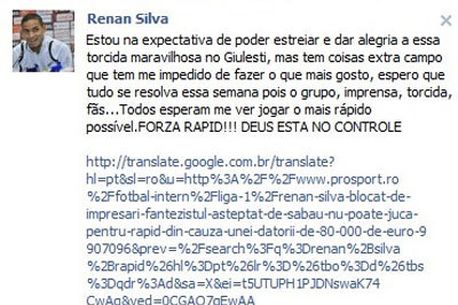 „Sunt în așteptarea debutului și a oferi bucurie acestor fani minunați din Giulești. Dar sunt lucruri extra-fotbal care m-au împiedicat să fac ceea ce îmi place. Sper ca totul să se rezolve săptămâna asta, pentru grup, presă, fani. Toți așteaptă să mă vadă jucând cât mai repede. Forza Rapid!!! Dumnezeu e deasupra”, a spus Renan Garcia pe pagina lui de Facebook.