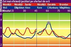 sunt notați cei mai eficienți jucători ai fiecărei echipe în