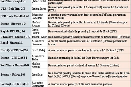 Degeaba au petrecut arbitrii 10 zile de pregătire intensă pe țărmul Mării Mediterane, în Antalya (Turcia), pentru că ceea ce li s-a predat și li s-a recomandat le-a intrat pe o ureche și le-a ieșit pe alta. Penalty-uri greșit acordate, din care s-a marcat, sau neacordate, goluri din ofsaid sau în urma unor faulturi au fost cele mai grave erori. CFR Cluj, din cea mai iubită grupare de către arbitri, a devenit o „cenușăreasă“ caruia nu i s-au mai dat lovituri de pedeapsă și a fost sancționată aiurea.