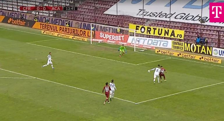 CFR Cluj a cerut penalty în minutul 14 al meciului cu Academica Clinceni, din prima etapă a play-off-ului. Florin Gardoș a blocat mingea cu mâna, la o acțiune a lui Valentin Costache.