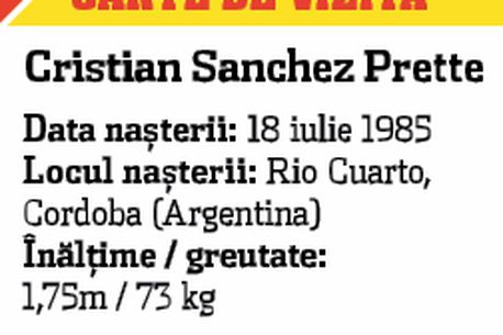 La doi ani după ce a fost recomandat lui CFR de actualul director executiv din Gruia, Răzvan Zamfir, Cristian Sanchez Prette a ajuns în sfârșit la Cluj, ieri fiind prezentat oficial ca jucător al campioanei României. Cristian, ce te-a determinat să optezi pentru un transfer la Cluj? "Oferta foarte bună și tentația de a juca în Liga Campionilor. În plus, știam că aici sunt foarte mulți argentinieni și am considerat transferul aici un prim pas important spre fotbalul din Europa. Cred că aici îmi va fi mai ușor să mă adaptez. Oricum, este un pas înainte în carieră".
