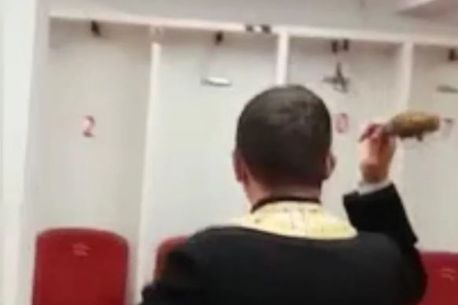 Preotul a dat cu apă sfințită atât pe teren, unde a ținut o slujbă, cât și în vestiare. Dinamoviștii speră astfel că echipa lui Uhrin va trece peste înfrângerile din Liga 1, potrivit sport.ro.