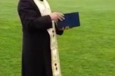 Marți, un preot a venit la Stadionul Dinamo din cartierul bucureștean „Ștefan cel Mare”, unde s-a rugat pentru ca echipa să rămână în Liga 1.
