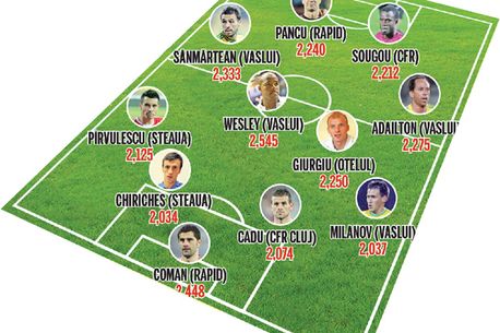 Conform mediei calificativelor acordate la partidele din Liga I de către reporterii ProSport, primul „11″ al sezonului 2011-2012 are o bază formată din fotbaliștii lui FC Vaslui. Vicecampioana a dat patru nume pentru acest dream-team, în timp ce campioana CFR a propus doar doi fotbaliști. Steaua a contribuit cu doi jucători, ambii fundași, Rapid la fel, în timp ce Dinamo, laureata Cupei României, nu are niciun jucător între titularii „echipei stelelor” Ligii I. Oțelul, echipa care a participat în grupele Champions League în sezonul tocmai încheiat are la rândul ei un reprezentant în această formație.