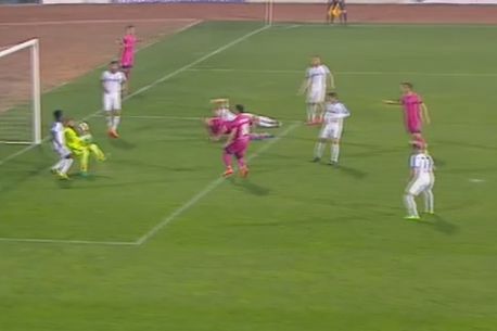 Poziționat central, la șapte metri de poartă, Ștefănescu a ales să tragă tare, s-a lăsat bine pe minge și a șutat violent, dar execuția sa a fost blocată, cumva, de Stanca, portarul gorjenilor reușind un reflex uluitor.