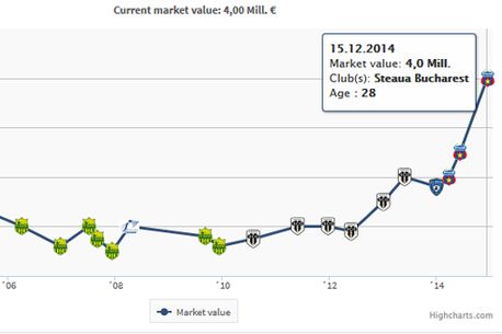 Iar cota de piață a omului de gol al campioanei a crescut considerabil de când s-a transferat în România. Ajuns la Steaua liber de contract, Keșeru valorează acum 4 milioane de euro, în viziunea Transfermarkt, adică mai mult decât dublu față de momentul transferului.