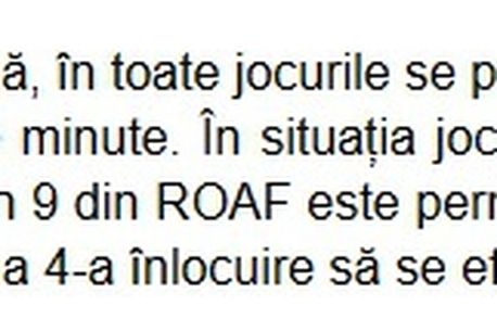 Articolul 30 din ROAF a fost schimbat însă în acestă vară. Până la startul acestui sezon situația privind a patra schimbare din Regulamentului de Organizare a Activității Fotbalistice (ROAF) era destul de clară, ultima parte fiind îngroșată cu roșu după cum urmează: „În conformitate cu modificarea articolul 30, punctul 11 din ROAF, aprobată în ședința Comitetului Executiv din 8 august 2017, în faza națională a Cupei României, în toate jocurile se pot efectua maximum trei înlocuiri de jucători pe toată durata celor 90 de minute regulamentare de joc. Totodată, va fi permisă efectuarea unei a patra înlocuiri de jucători numai în reprizele de prelungiri și doar în situația în care celelalte trei schimbări au fost efectuate pe durata celor 90 de minute regulamentare de joc.”