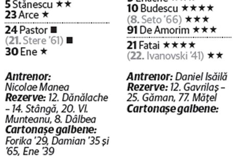 Rezerve: Gavrilaș, Tembo, Takayuki, Ivanovski, Giurgiu, Găman, Mățel