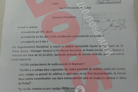 Acasa » Fotbal Intern » Liga 1 » Astra – Steaua se joacă și la Comisii! FOTO: Plângerea depusă de formația din Giurgiu contra roș-albaștrilor