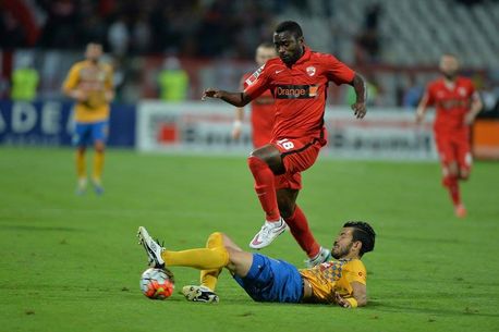 21:21 GOOOOOL DINAMO!!! (ESSOMBE 19). Vă spuneam că Essombe a ratat primele două ocazii bune ale partidei… Ei bine, vârful francez care a debutat azi la Dinamo reușește să înscrie cu capul, din 6 metri, după un ricoșeu norocos! Vojnovic i-a pasat excelent lui Rotariu, care a tras în Pecanha, însă mingea a ajuns la vârful francez care a făcut 1-0!