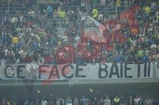 Imediat după fluierul de start, galeria Stelei, care este situată sub sectorul unde se află rapidiștii, a ținut să răsucească cuțitul în rana adversarilor. Fanii steliști au afișat un banner care a ridicat tensiunea la cote insuportabile în tabăra oaspeților.