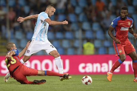 Axente (foto jos) a marcat în poarta Stelei și i-a adus echipei din Târgu Mureș primul trofeu din istoria clubului. Foto: Octav Ganea