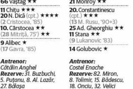 Rezerve: Miron, Lukanovic, Bădescu, Onciu, Velici, Tolimir, M. Rusu