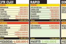 În plus, dacă Gigi Becali va reuși achiziționarea spaniolului Abel Gomez Moreno, care n-ar costa nimic, atunci latifundiarul din Pipera ar avea numai de câștigat, pentru că la anul l-ar putea vinde pe mijlocașul lui Murcia cu cel puțin o jumătate de milion. În comparație cu Steaua, Rapid e echipa care a ieșit până acum cel mai mult în profit, asta datorită și transferului lui Săpunaru la FC Porto, în timp ce CFR-ul e echipa care a investit cel mai mult, cheltuind aproape 4 milioane de euro. O altă grupare care a transferat mulți jucători e FC Timișoara.