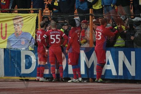 La finalul jocului, steliștii au mers să-i potolească pe fanii nervoși. Florin Costea a ieșit cam șifonat. Suporterii l-au scuipat, el ștergându‑se pe față în timp ce mergea spre vestiare (foto).