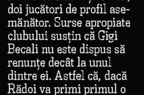 Gigi Becali a reacționat diamentral opus la doleanțele jucătorilor săi care și-au manifestat intenția de a părăsi Steaua în aceast sezon. Primul care a avut curajul să spună ce gândește a fost Mirel Rădoi. „A venit timpul să mă despart de Steaua. Sper ca meciul cu Dinamo să fie ultimul derby”, spunea Rădoi, surprinzând la finalul meciului pierdut de roș-albaștri cu 1-2, înfrângere din cauza căreia Steaua a ratat și titlul. Reacția lui Becali nu a întârziat să apară, fiind însă una pașnică. Dacă inițial a zis că nu îl va lăsa să plece, ulterior s-a răzgândit: „Poate să plece. Orice e de vânzare pe lume!”.