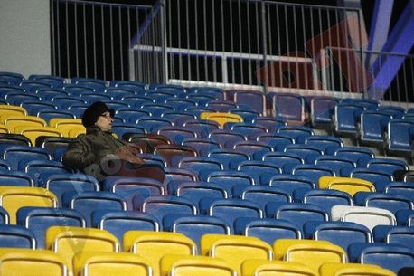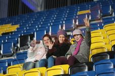 UPDATE 18:10! Cele 300 de fane ajunse între timp la stadion au uitat de startul meciului pentru a pune mâna pe fularele și mingile aruncate în tribune de câțiva oficiali