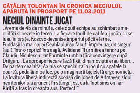 „Acțiunea lui Victor Pițurcă este firească pentru vremurile atât de sărace material și mai ales spiritual pe care trebuie să le trăim. Este aceea a unui jucător obișnuit să confunde practicile de pe felurite „suprafețe” de joc cu acelea de pe gazon. Fiind dependent de hazardul norocului, fiind obsedat că se „complotă” împotriva lui, este firesc să pună capcana că măsluirile servite la masa de joc pot fi aruncate ca justificare a superiorității și adversarilor din teren. Prin câteva intoxicări bolnave, se face un proces de intenție, care nu numai că ne îndepărtează de adevăr, dar chiar îl ascunde.