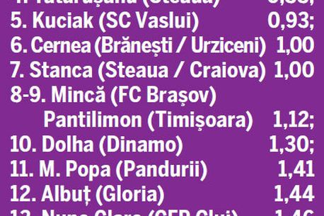 prestațiile tuturor portarilor din Liga I care au evoluat cel puțin