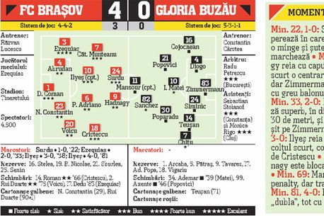 După prima repriză, problema brașovenilor rămăsese „mai dăm patru să întrecem Steaua în clasament?". Meciul cu Buzăul a fost doar un antrenament televizat al trupei lui Răzvan Lucescu, înaintea deplasării de la Rapid. Cu un adversar plictisit și plictisitor, Brașovul nu avea cum să nu facă scor aseară. Singura problemă ar fi fost o posibilă răceală care să-l prindă pe Coman, amorțit în poartă. S-a rezolvat rapid și aceasta, pentru că Surdu (22), Ilyeș (38), dar mai ales Ezequias (33), cu un șut spectaculos de la mare distanță au încălzit atmosfera.