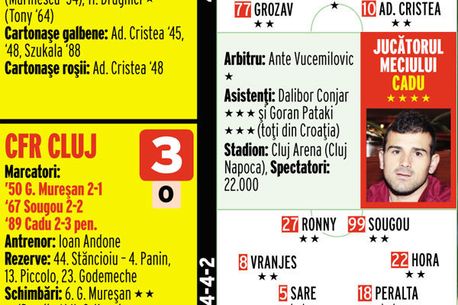 Caseta meciului „U” Cluj – CFR Cluj 2-3
