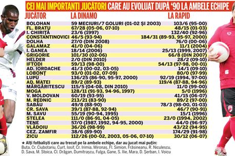Astfel, nu mai puțin de 45 de fotbaliști au trecut pe la Dinamo și