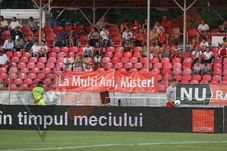 Cum era de așteptat, fanii lui Dinamo au ocolit stadionul la meciul cu Oțelul, dezamăgiție de eliminarea din Europa League. Cei 500 de fani care s-au prezentat totuși la meci au ținut să-și arate supărarea prin câteva mesaje postat pe garduri.