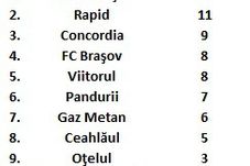| Etapa | Viitorul | CSMS Iași | FC Brașov | Concordia | Pandurii | Gaz Metan |