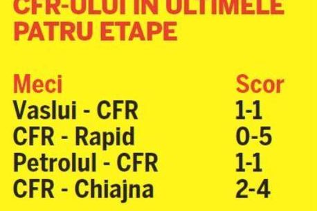 Cifrele arată că CFR e bulversată la maxim. În ultimele patru meciuri, formația din Gruia a adunat numai două puncte și a primit 11 goluri. Astfel, „vișiniii” au stabilit un nou record negativ în era Paszkany, după ce la meciul cu Rapid au bifat cea mai drastică înfrângere din istoria CFR-ului, scor 0-5. Recordul negativ doborât la meciul cu Chiajna data din sezonul 2004-2005, atunci când, cu Șunda antrenor, CFR a primit 10 goluri între etapele 15 și 18. De asemenea, pentru prima dată de când a ajuns la CFR, Cadu a fost contestat de fani. „Nu te mai implici ca anii trecuți”, a fost mesajul fanilor către căpitanul CFR-ului.