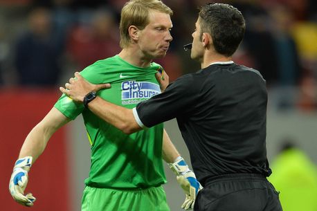 Unul dintre acestea a fost surprins în imagini de către Alexandru Hojda, fotoreporterul ProSport care a furnizat redacției o imagine ciudată. Actorii sunt portarul Stelei, Gedrius Arlauskis, și arbitrul partidei, Radu Petrescu. Pentru cei care nu au văzut meciul există încă misterul: ce făceau cei doi? Se îmbrățișau? Se pregăteau pentru un conflict?