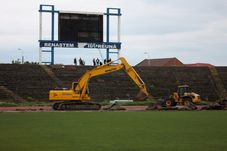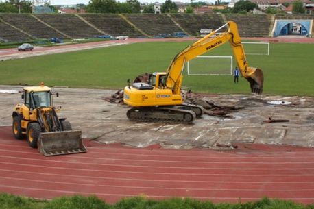 Buldozerele au început mai întâi să decoperteze pista de atletism. Foto: Tibi Bologh