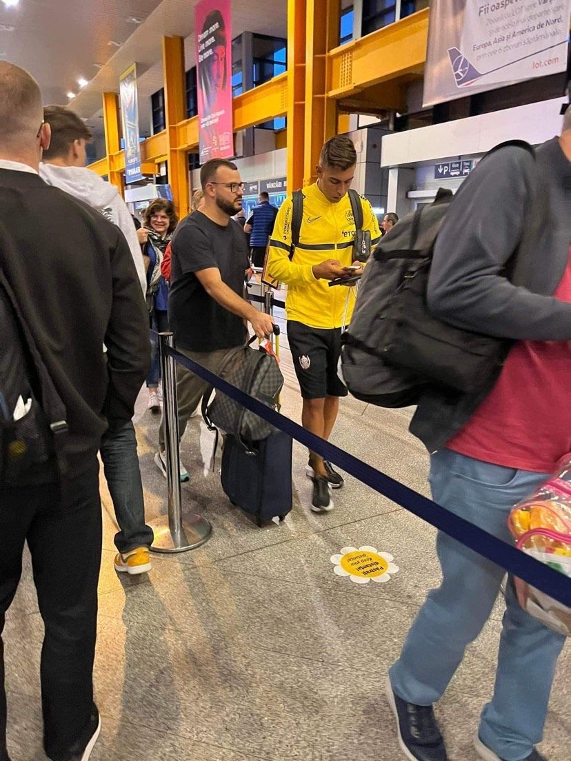 Acesta a și fost fotografiat de un fan la aeroportul din Cluj Napoca, îmbrăcat în treningul oficial al echipei campioane.